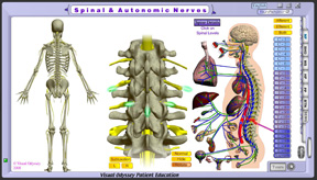 <--- This screen by itself is the Neuropatholator Starter Module. All of the other screens in this window are part of the Neuropatholator Core ROF. Click to show organs and nerves as they relate to the spine. Demonstrate energy flow, subluxations, and degeneration with ease. Great for special ROFs, lectures, and visit by visit talking points. |