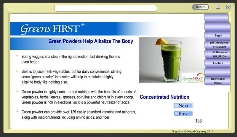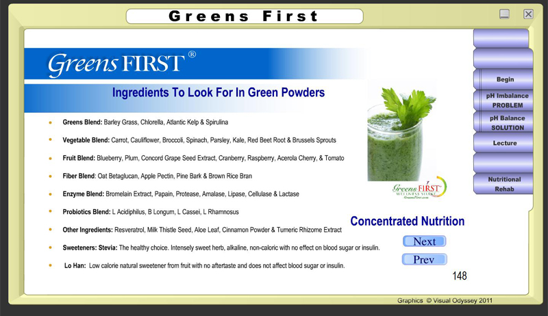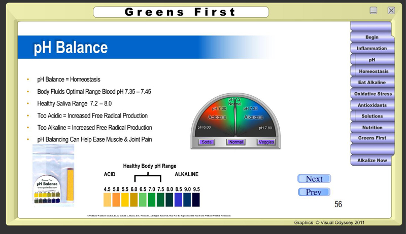 The Welnesspatholator comprehensively demonstrates to both patients and referring doctors the huge benefit of alkalizing and nourishing your body with Greens First and the many great Wellness Shakes they offer.